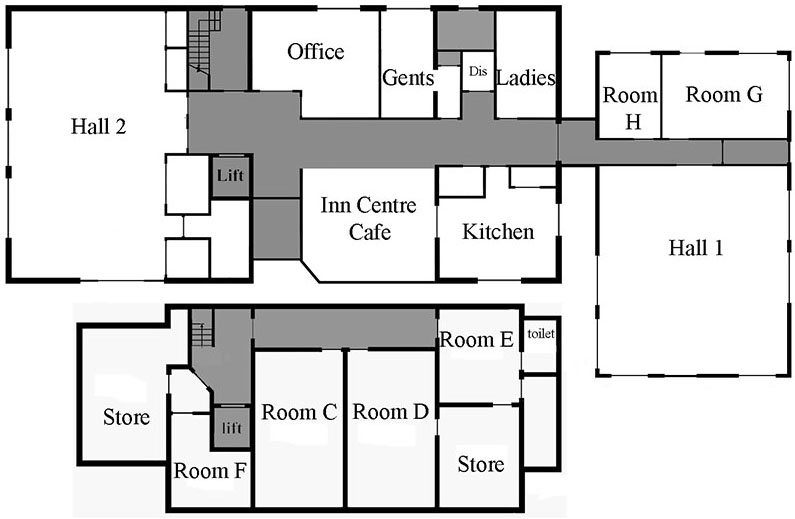 H&D Community Centre (Mark 2) consists of: Two nearly identical sized halls