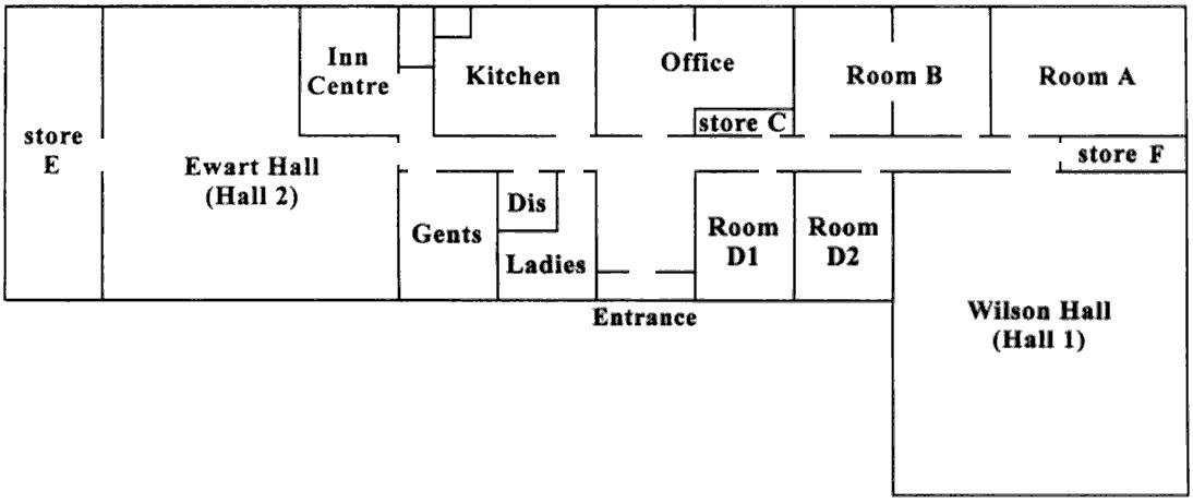 the Community Centre consisted of: Two nearly identical sized halls (Halls 1