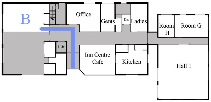 Room B's a smaller room. It's measurements are 23ft 9" by 17ft 3" or 7.23m by 5.25m. |