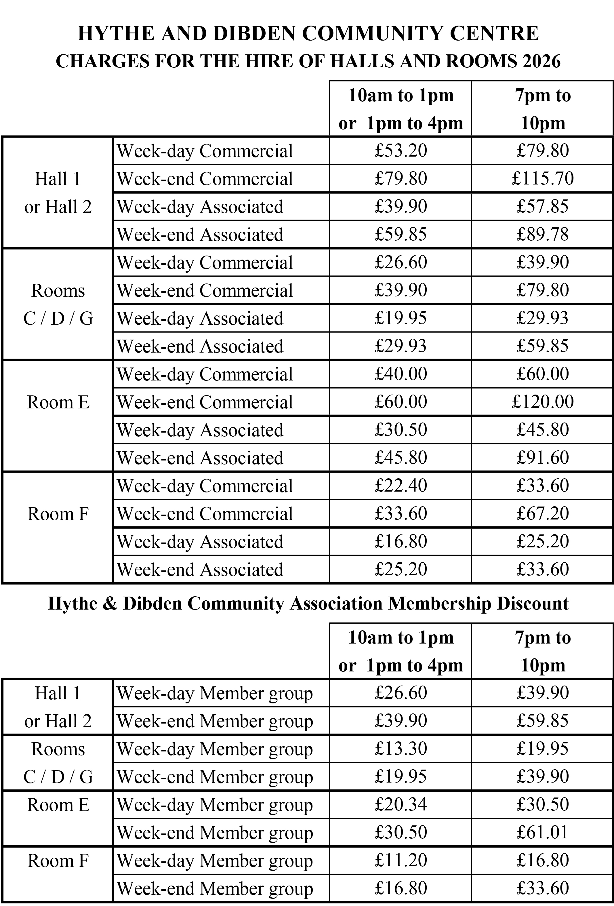 We only hire out the upstairs rooms (C,D,E & F) during the weekend if the downstairs rooms (Hall 1 & 2) are already in use.